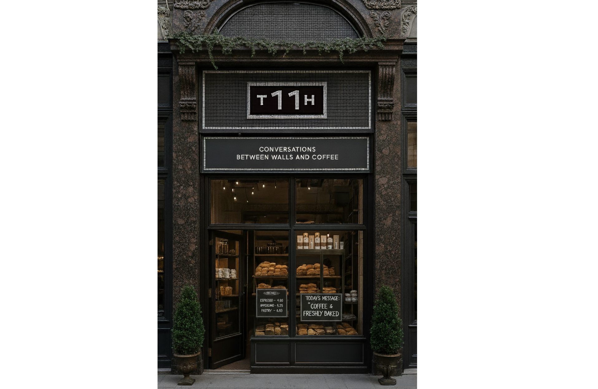 브랜드의 이름 속 숫자 ‘11’은 구조적이면서도 상징적인 형태로, 단순한 숫자를 넘어 공간과 시간을 담아내는 상징처럼 활용됩니다. 블랙과 화이트의 강렬한 대비, 정교하게 쌓아올린 타일 패턴은 T11H만의 아이덴티티를 형성하며, 모던하면서도 클래식한 카페 경험을 제공합니다.이 디자인으로 시작하기